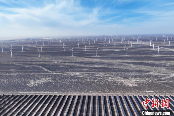 1月6日,航拍甘肅省酒泉市瓜州縣光伏和風(fēng)力發(fā)電項(xiàng)目。李亞龍 攝