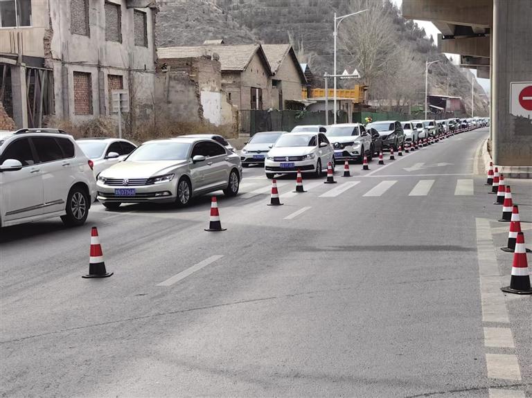 3月22日上午8時,通往大砂坪公墓區、甘肅臥龍崗人文紀念園的佛慈大街上車流量明顯增多,雖然車輛行駛速度緩慢,但整體秩序良好。在大砂坪橋公交站處準備乘坐清明節掃墓臨時專線公交車前往公墓祭掃的市民排起了長隊。墓園附近,等待進入的車輛也排起了長隊,蘭州市交警支隊河北大隊交警引導祭掃車輛安全進出墓園停車場,保障路面交通暢通。