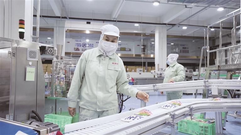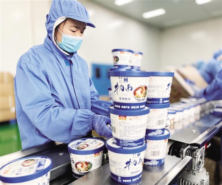 走進蘭州樹屏食品產業園的“蘭啵旺”智能化生產基地,只見工人們站在大鍋前,攪拌查看著用牛肉、牛骨和各式香料熬成的牛肉湯。一袋袋封裝好的牛肉拉面預包裝產品,經過了嚴苛而精細的生產加工流程和層層質檢后,工作人員將傳送帶上的拉面產品一一打包、裝箱,碼放在指定區域。“我們在源頭把控、食材精選、加工制作的各個環節精益求精,加強技術創新,提升智能制造水平,以現代食品工業技術優化還原,做到產品有標準、可溯源、真還原。”甘肅隴萃堂營養保健食品股份有限公司副總裁兼首席執行官王小偉介紹說。