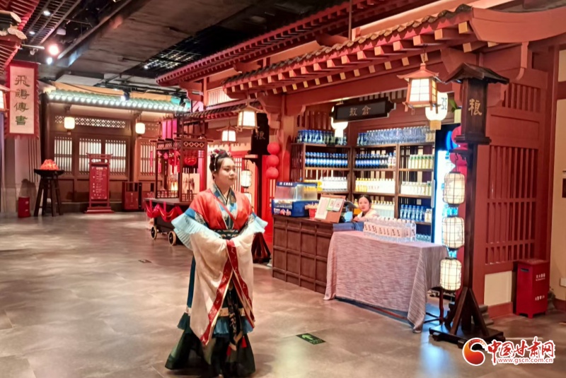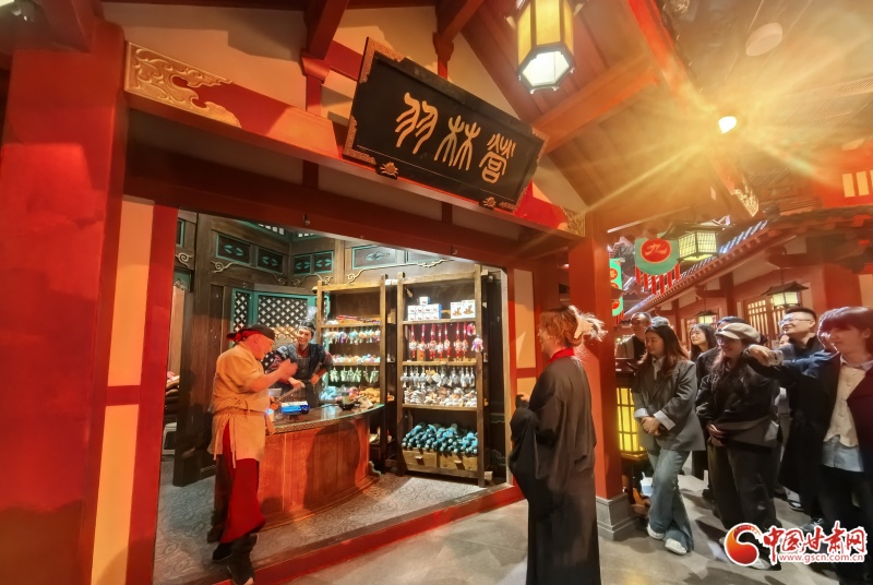 “這里的古街古巷、酒肆茶館、青石板路等場景極為逼真,店鋪內的物件也都嚴格按照漢代規制打造,每一處細節都經得起推敲,給游客帶來強烈的視覺沖擊和沉浸式體驗。”王建剛介紹,街區內的NPC角色穿梭其中,游客可與霍去病“并肩作戰”,或在隴春山的詩會中與古人“對飲”。