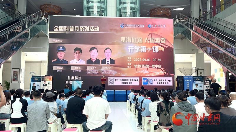 中國甘肅網9月3日訊(西北角·中國甘肅網記者 張慧雅)近日,甘肅科技館舉行科普講座,活動特邀空軍大校焦國力、清華大學教授董景新、蘭州萬里航空機電有限責任公司副總工程師吳朝選、中國航天科技集團五院510所科技委秘書長雷占許四位科普專家,為120余名學生帶來“開學第一課”,引領同學們探秘國之重器。線上直播吸引62.3萬余人次同步觀看。