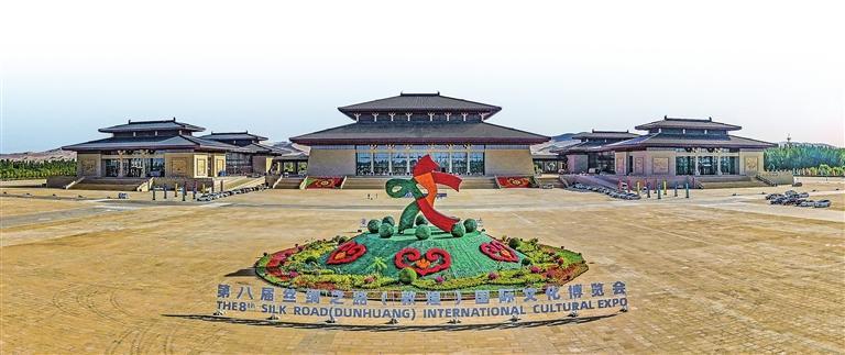 第八屆絲綢之路(敦煌)國際文化博覽會準(zhǔn)備就緒,主場館裝扮一新。 田蹊