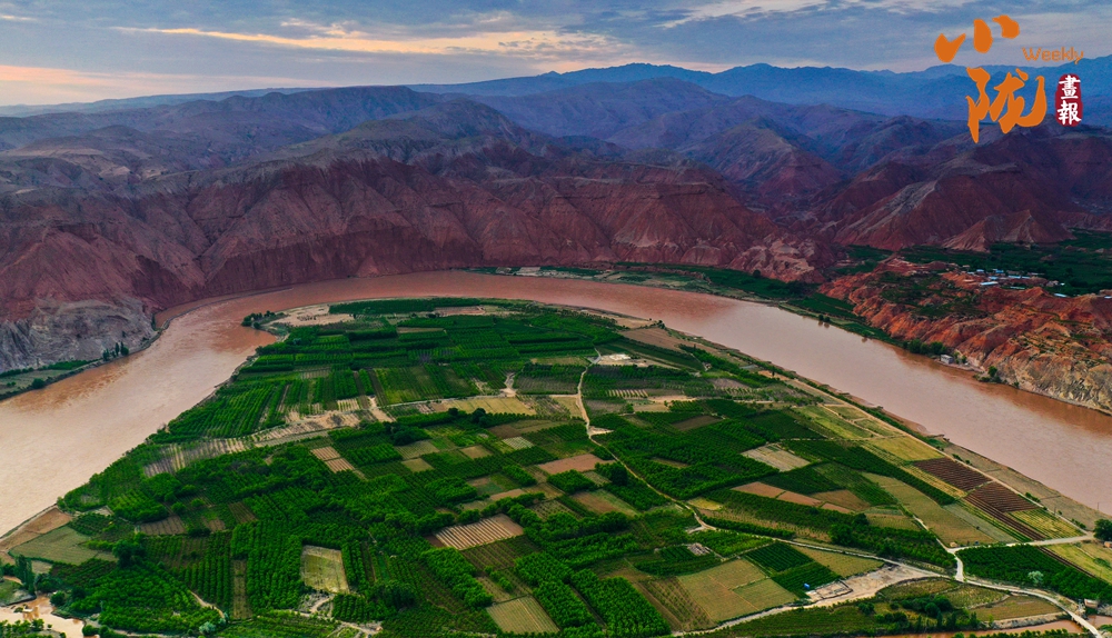 沿著黃河岸邊望去,大片綠色田園如翡翠般鑲嵌在廣袤曠野之中。阡陌縱橫間,莊稼隨風搖曳,為蒼涼的河谷增添了一抹靈動的柔情。遠處的村落、搖曳的蘆葦、穿梭的飛鳥,與紅山碧水共同繪就了一幅層次豐富的山水畫卷。