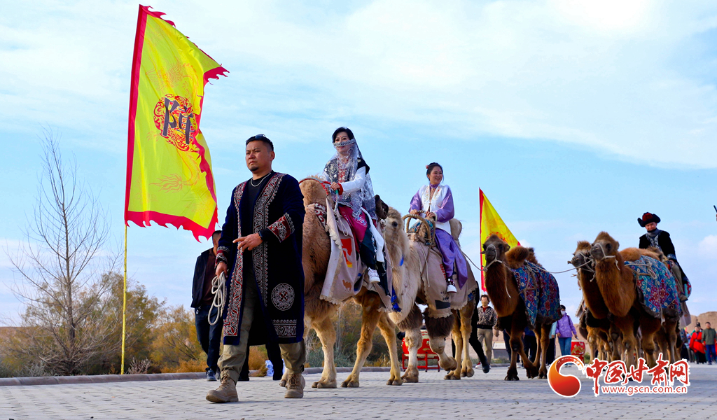 10月9日,一隊由33峰駱駝組成的駝隊行進在高臺縣境內的絲綢之路大型漢唐古文化遺址——駱駝城遺址內,千年駱駝城又響起陣陣駝鈴聲。