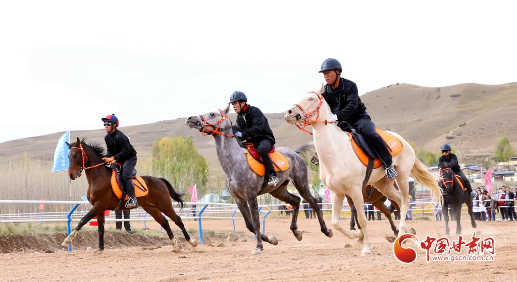 10月14日,山丹縣的一場賽馬會上,騎手們正策馬揚鞭,為游客展示多項馬術項目。山丹縣毗鄰祁連山自然保護區和山丹軍馬場,坐擁優質草場資源,養馬歷史逾兩千年,馬文化底蘊深厚,產業基礎扎實。近年來,當地圍繞馬文化主題,建設了賽馬場、觀光馬道、育馬基地等設施,致力于為游客與馬術愛好者打造一個獨具特色的馬文化體驗地。