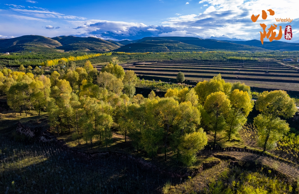 深秋時節,民樂境內層林盡染,雪山、村莊、河流、植被在“濃墨重彩”的秋色下,宛如一幅流動的詩意長卷,散發著別樣的韻味。