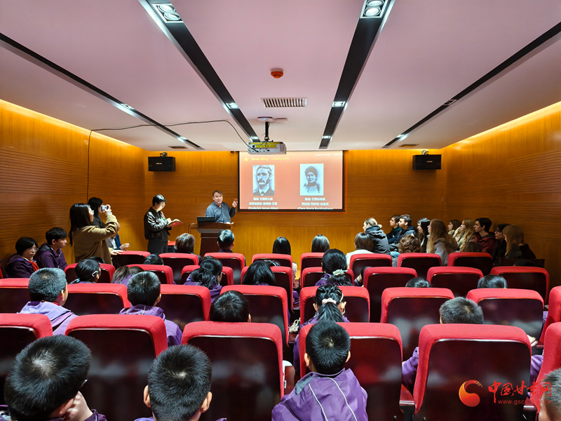 中國甘肅網10月24日訊(西北角·中國甘肅網記者 孫珩力)為積極響應甘肅省中小學“百校結好”倡議,深化國際理解教育實踐,傳承紅色文化基因,弘揚艾黎精神,10月23日下午,西北師范大學附屬小學組織六年級師生在路易·艾黎研究中心舉行了“追溯培黎歲月·續寫艾黎精神”國際理解教育主題活動。來自新西蘭、美國、南非、烏克蘭、巴基斯坦的外籍教師,白俄羅斯和法國的留學生20余人,及蘭煉二小校長受邀出席并觀摩了此次活動。