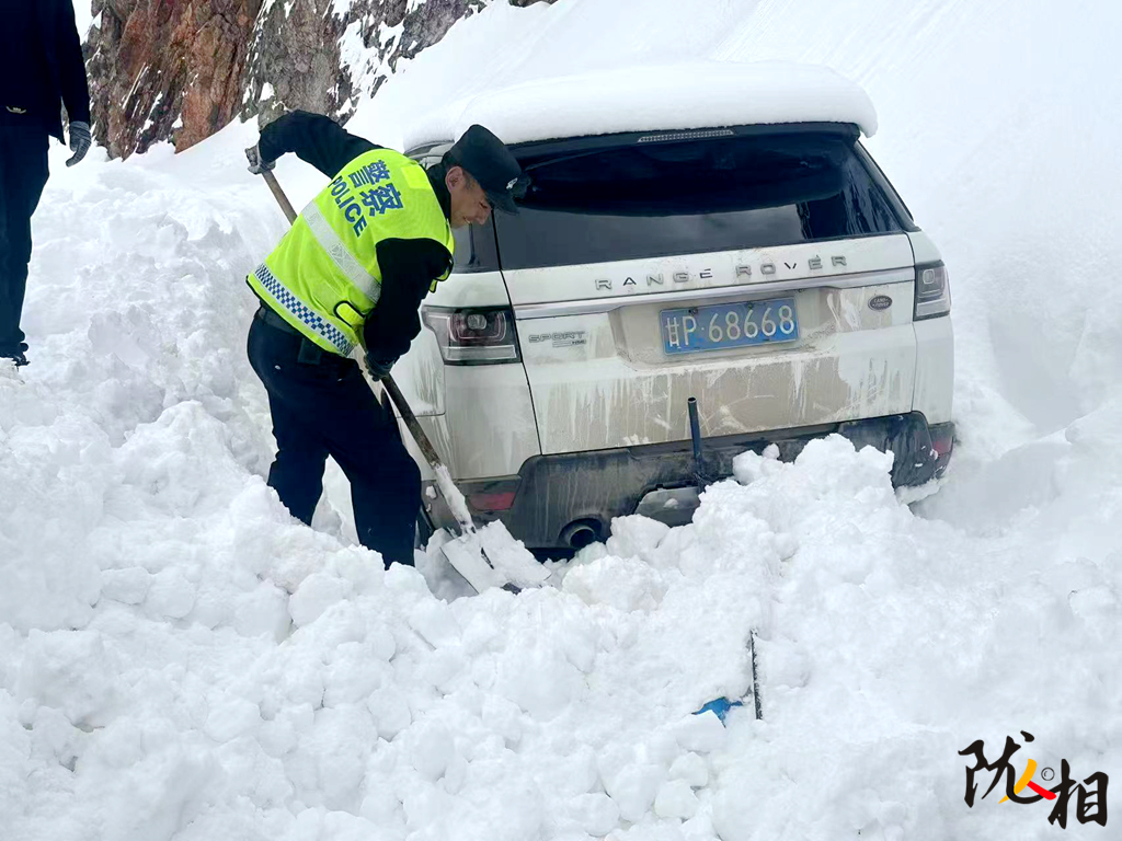 隨著江迭公路成為網紅自駕路線,旦知刀杰的工作增添了新的挑戰。2024年1月,一家5口被困在光蓋山積雪中,其中一位92歲老人出現高反癥狀。旦知刀杰頂著凜冽寒風前往救援,為老人給氧、脫下自己的棉衣披在老人身上,并將老人背至警車處火速送醫。4月的一個夜晚,暴雪突襲,他帶領戰友在積雪中徒步2小時,連續奮戰9小時,安全轉移30余名被困游客。