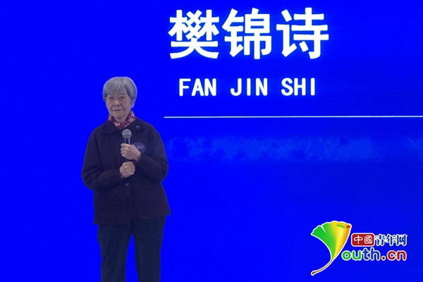 日前,譯林出版社“經典譯林”銷售十億慶典暨2020重點新書發布會在北京舉行。國家榮譽稱號獲得者、敦煌研究院名譽院長樊錦詩在會上發言。中國青年網記者 張詩瑩 攝
