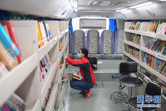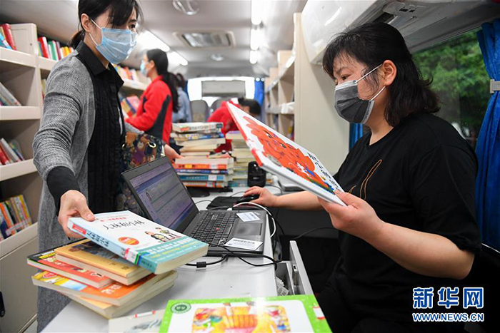3月26日,在長沙岳麓區石嶺塘社區,市民在流動圖書館里辦理借書。 近日,在做好疫情防控工作的同時,長沙流動圖書館恢復運營。長沙流動圖書館是長沙圖書館的總分館流動服務項目之一,以大巴車為載體,每月定期到社區、學校、企業、工地等區域,為市民提供閱覽、咨詢、辦證、借書、還書等便捷化公共服務。 新華社記者 陳澤國 攝