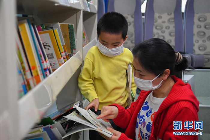 3月26日,在長沙岳麓區石嶺塘社區,家長和小朋友在流動圖書館里挑選書籍。 近日,在做好疫情防控工作的同時,長沙流動圖書館恢復運營。長沙流動圖書館是長沙圖書館的總分館流動服務項目之一,以大巴車為載體,每月定期到社區、學校、企業、工地等區域,為市民提供閱覽、咨詢、辦證、借書、還書等便捷化公共服務。 新華社記者 陳澤國 攝
