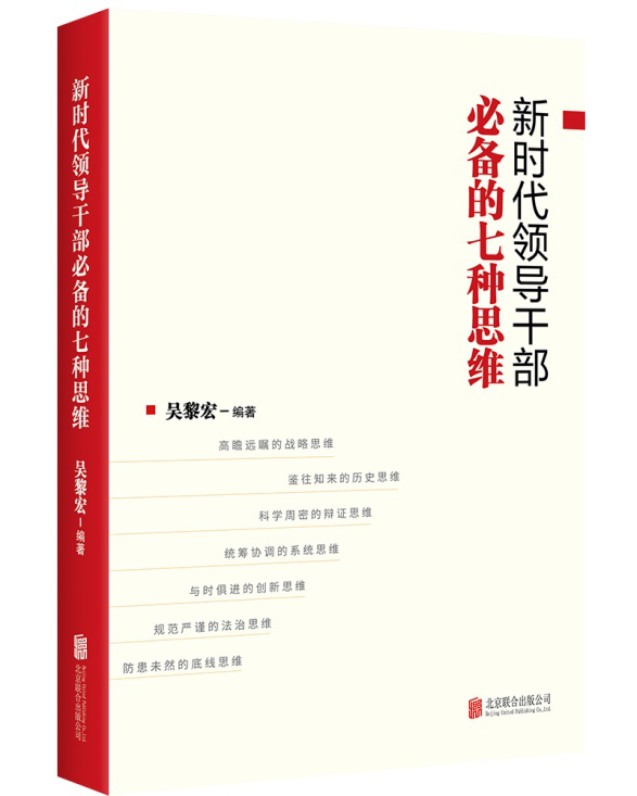 日前,北京聯(lián)合出版公司出版了《新時代領(lǐng)導(dǎo)干部必備的七種思維》一書。本書圍繞如何提高理論思維能力,對戰(zhàn)略思維、歷史思維、辯證思維、系統(tǒng)思維、創(chuàng)新思維、法治思維、底線思維的含義、功用和訓(xùn)練方法進(jìn)行了系統(tǒng)闡述。