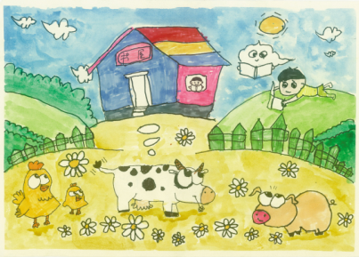 面對(duì)這部由中國(guó)少年兒童新聞出版總社出版的《“我的書(shū)屋·我的夢(mèng)”——2019年農(nóng)村少年兒童閱讀實(shí)踐活動(dòng)優(yōu)秀作品集》,讓人欣喜的是,它不但有文字,還有很多入選的畫(huà)作,孩子們運(yùn)用了大膽的色彩、大膽的想象、大膽的線條,恣肆地描繪著他們的夢(mèng)和憧憬,這些夢(mèng)根植于他們生活的山鄉(xiāng)曠野,又呼應(yīng)著遠(yuǎn)方、星辰與大海。我尤其記得其中的一幅,那是一座高聳的書(shū)塔,那種拔地而起、直上云霄的氣勢(shì),是一種象征,是一種隱喻,是這一代孩子想站到巨人肩上的渴望,是他們對(duì)祖國(guó)明天最美好的祝福和期待,也是中華民族必將走向復(fù)興的昭示。