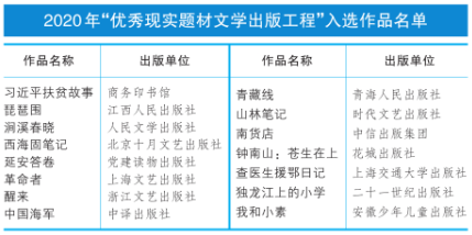 - 2020-12-152020“優(yōu)秀現實題材文學出版工程”入選作品揭曉