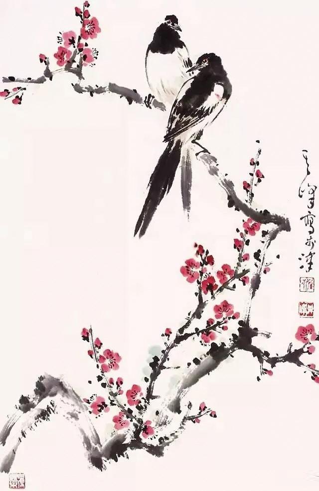那是我第一次看見梅花,墨黑的枝干上,稀稀疏疏臥著幾朵紅紅的梅花,很安靜。畫上有四個字:傲雪紅梅。兩邊還有對聯,內容已經不記得了。正值外面大雪紛飛,院子里已落了一層白白的積雪,一時間詩意悠然。對著那副梅花圖,清清爽爽的,令人內心好快樂。那時,我在讀《紅樓夢》,只記住了那句:琉璃世界白雪紅梅。