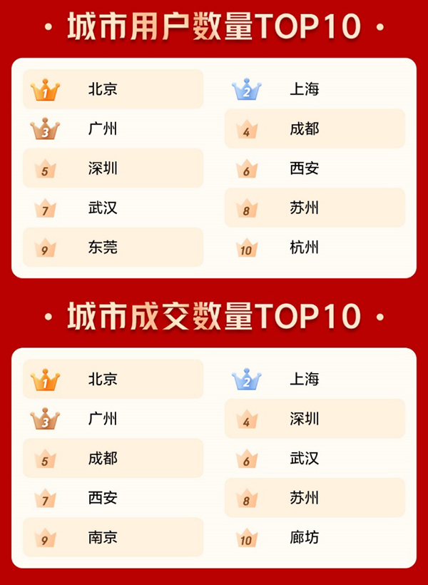 2020年哪些城市最愛買書?縱觀各地圖書成交額來看,北上廣深是一線城市,也是買書先鋒城市。京東數據顯示,北京、上海、廣州、深圳和成都五個城市在圖書用戶數量、成交數量和成交額上在2020年依舊保持名列前茅的佳績,北上廣居民在閱讀上始終保持最高的追求,成都則大有奮起直追的趨勢,不僅用戶數量上超越深圳位列第4,還在成交額和成交數量上牢牢占據第5的席位;歷史名城西安則展現出了自己作為千年古都的文化氛圍,在悠久歷史文化的熏陶下西安人民的買書熱情也相當火爆,在用戶數量、成交數量兩個榜單上分別位列第6、第7。