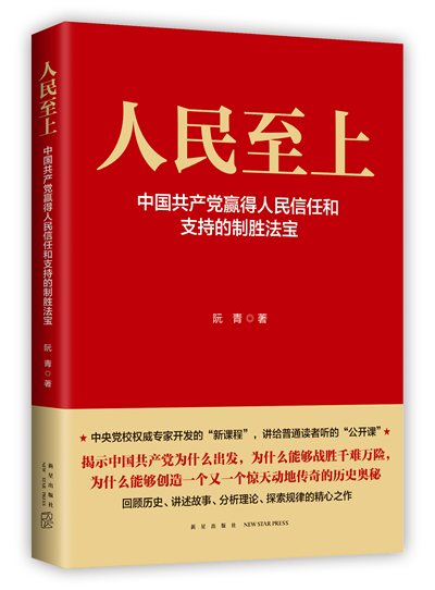 近日,由中共中央黨校(國家行政學院)哲學部馬克思主義哲學教研室原主任、教授、博士生導師阮青撰寫的新作《人民至上——中國共產黨贏得人民支持和擁護的致勝法寶》一書由中國外文局新星出版社正式出版發行。
