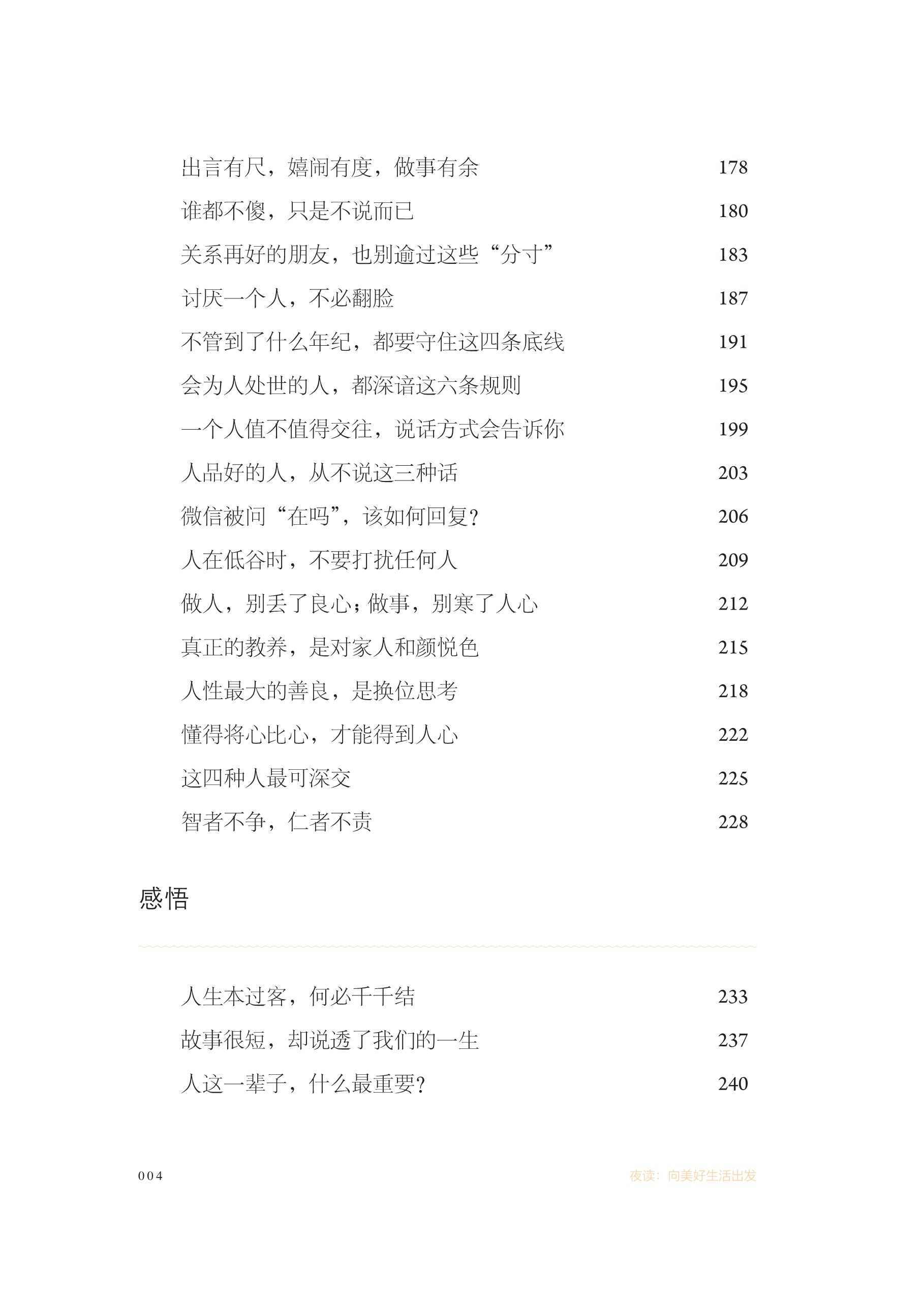 本書精選了新華社“夜讀”欄目五年來的近百篇文章,涵括親情、友情、成長、修養等多個話題,通過小視角身邊事給讀者帶來人生的感悟與啟迪,幫助讀者培養正確的價值取向和良好的品德修養。文章均配有專業主播朗讀,以優質聲音演繹精品內容,讓讀者體驗更多與書相伴的方式,是送給新時代青年的一本有溫度的書籍。