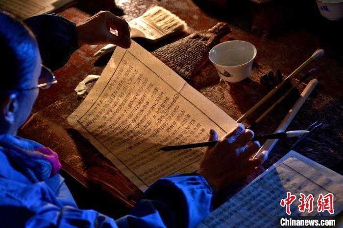 中新網成都11月16日電 (唐倩)戴著一副老花眼鏡,袁東玨坐在修補臺旁,臺面上平鋪著一疊泛黃殘損的書頁,彎彎曲曲滿是蟲蛀痕跡,一張張粘連在一起,這是一部清代年間的族譜,蟲蛀很嚴重。她很小心地揭起一頁布滿蛀洞的古籍,輕輕展開,有的地方緊緊粘在一起,她用一把竹子磨制的起子輕輕挑開。