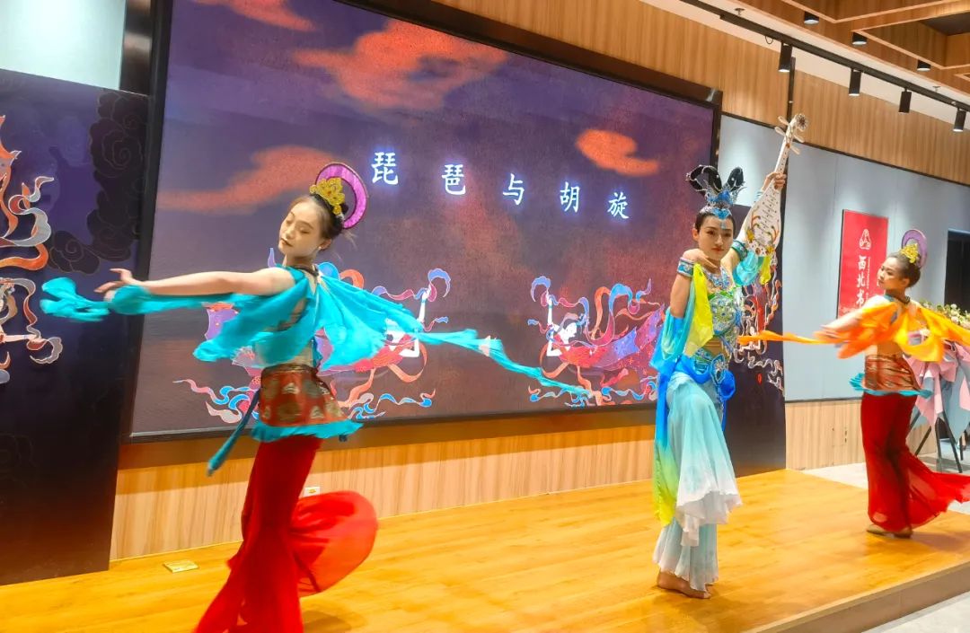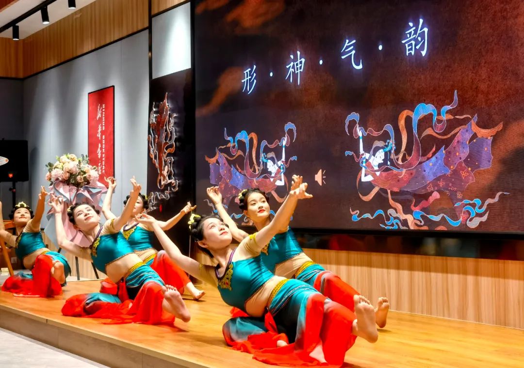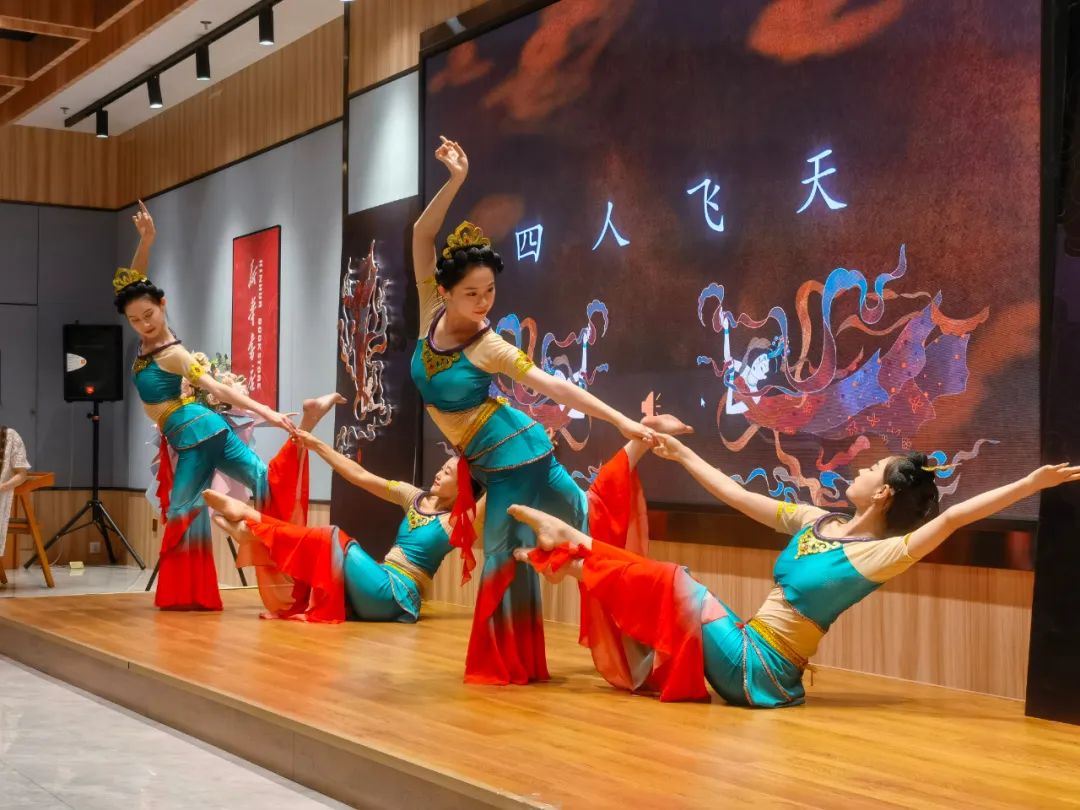 見面會現場,作者介紹了本書創作歷程,并通過“形、神、氣、韻”“抻、曲”“舞姿控制”“四臂觀音”“四人飛天”“胡旋與琵琶”等組合精彩紛呈的表演,使讀者更加直觀地了解本書的主要內容和敦煌舞蹈的文化內涵,感受敦煌舞蹈傳遞出的藝術價值、文化素養和無窮的魅力。