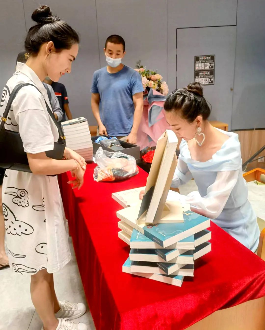 見面會還設計了互動環節,主編李莉現場教學,五位敦煌舞愛好者認真模仿,作者還向參與互動的讀者贈送了本書。在簽售環節后,作者及參演人員和讀者合影留念。