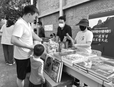 中關村圖書大廈攜手西郊機場居民委員會走進西郊機場家屬區,開展“八一建軍節 品書香文化”主題宣傳活動。
