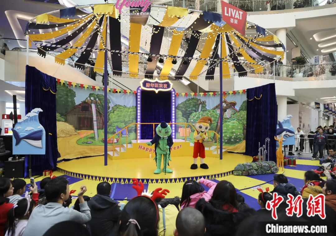 童話劇表演《木偶奇遇記》在北京一商場上演,現場匹諾曹和他的朋友的精彩表演吸引了眾多的觀眾。中新社記者 趙雋 攝
