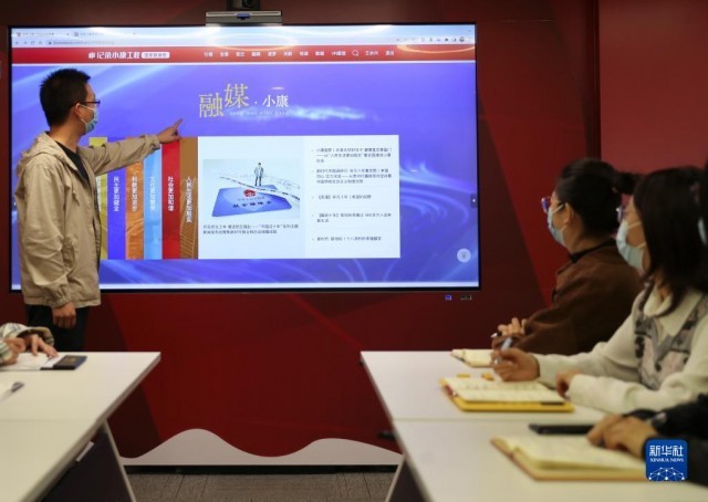 10月14日,“紀錄小康工程”數據庫工作人員在介紹“紀錄小康工程”數據庫。新華社記者 王楷焱 攝
