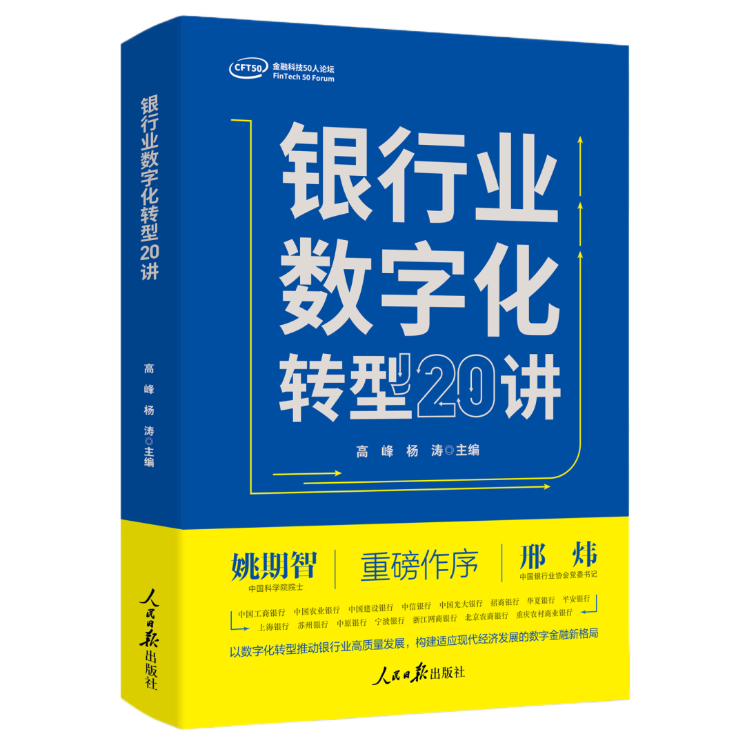 內容簡介:為進一步助力銀行業數字化轉型,在中國銀行業協會和金融科技50人論壇的學術支持下,《銀行業數字化轉型20講》一書邀請20位金融相關領域的政企學研專家學者,就銀行業數字化轉型的內涵、路徑、實踐經驗、未來趨勢、中小銀行的破局之路等,做深入解讀、分析。該書從中國銀保監會劉春航“全面推進銀行業數字化轉型”開篇,由銀保監會、央行、中銀協、中國社科院等諸位大咖從政策解讀、倫理治理、風險管控、轉型評價及中小銀行轉型等角度探究銀行業數字化轉型的重點及難點,從第六講開始,邀請各銀行負責人就本行實踐展開深入分享,包括工行、建行、農行、招行、光大銀行、平安銀行、上海銀行及網信銀行等15家銀行。該書可作為銀行從業者的參考圖書,也可供廣大讀者深入了解銀行業數字化轉型,進一步助力構建適應現代經濟發展的數字金融新格局,推動數字經濟和數字社會的高質量發展。