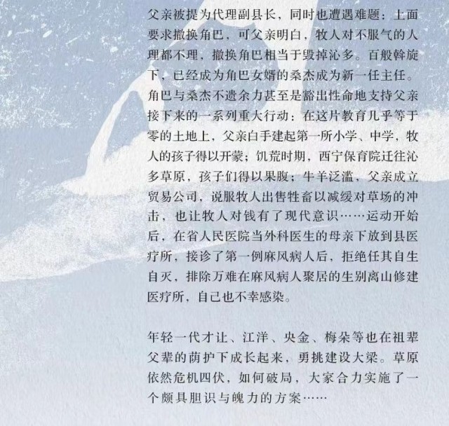 《雪山大地》將青藏高原幾十年來發生的改天換地,以及以“父親母親”為代表的三代建設者在這片土地上耕耘建設的日日夜夜,展現在讀者面前。人與自然、人與動物、生態與發展的主題貫穿始終,全景式地展現了藏族牧民傳統社會形態和生活樣貌的變遷。