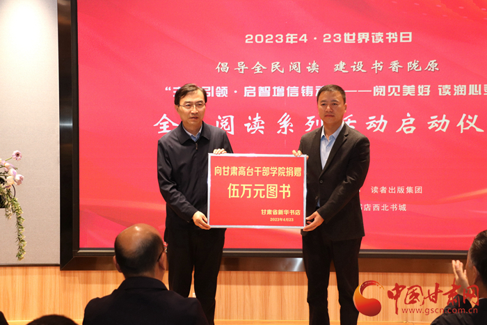 啟動儀式上,讀者出版集團黨委書記、董事長梁朝陽向高臺干部學院捐贈圖書并宣布系列活動正式啟動。讀者出版集團黨委委員、副總經理王光輝與甘肅省新華書店黨委書記、董事長張曉東向讀者代表“甘肅好人”景正紅、“優秀護士”嚴曉麗、“公安之星”王令成、“優秀教師”王云芳捐贈圖書。
