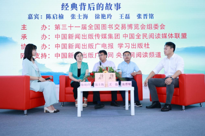 全民閱讀“紅沙發”系列訪談活動上,學習出版社介紹《經典背后》的出版故事。組委會供圖