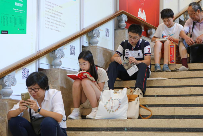 8月16日,讀者在2023上海書展現場閱讀。