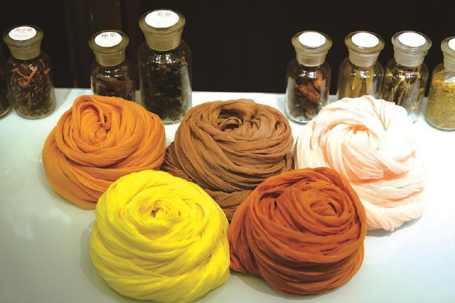 而與大多數(shù)傳統(tǒng)色彩研究者不同的是,曾啟雄極為重視實驗考證。作為一位技藝精湛的染色家,其論著里介紹傳統(tǒng)染色的文本內(nèi)容及圖片,都是他親歷親為、反復(fù)實驗后的成果,這也是該書最為精彩之處。在染色實驗過程中,除了復(fù)原了傳統(tǒng)顏色的本來面貌外,作者還做出如下貢獻:首先,通過大量實驗印證了古籍記載的真?zhèn)?,并糾正了其中一些不實之處。比如,他通過在柘木里添加明礬、高溫染色后的結(jié)果,顛覆了以往認為唐代帝王穿用的“柘黃”袍服是暗淡赭黃色的普遍認知,印證其應(yīng)為類似明清時代帝王使用的明黃色。其次,使用不少篇幅介紹了不同的染料、媒介物等因素對于染色效果等的制約作用。以石榴皮作為染材為例,當(dāng)它與不同媒染劑,如明礬、鐵等進行染色時,則會形成由黃色到黑褐色的不同顏色。即使采用相同的染法,因棉麻絲綢等介質(zhì)迥異,也會染出不同顏色等。最后,該書對于各種染料特點、工藝程序、顏色效果等的表述,較其他相關(guān)論著也更加纖悉無遺和引人入勝,如關(guān)于紫膠蟲的染色工序的詳盡介紹等,讓讀者有一種身臨其境、意欲參與的感受。