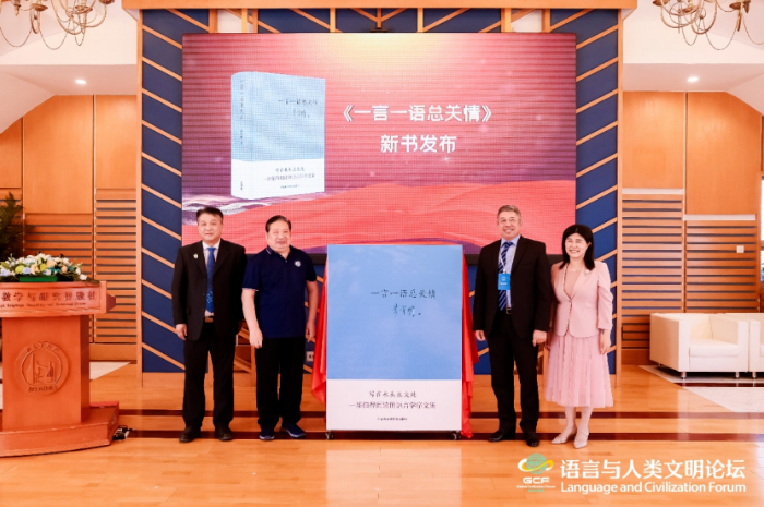 9月16日,由北京外國語大學(xué)主辦、外語教學(xué)與研究出版社承辦的“語言與人類文明”論壇在北京舉辦。活動上舉行了由中國辭書學(xué)會會長、北京語言大學(xué)教授李宇明撰著,外語教學(xué)與研究出版社出版的《一言一語總關(guān)情》新書發(fā)布儀式。北京外國語大學(xué)黨委副書記胡志鋼,外研集團(tuán)黨委書記、董事長、外研社社長王芳,李宇明教授,烏茲別克斯坦國立世界語言大學(xué)副校長阿利舍爾·阿比讓諾夫(AlisherAbidjanov)共同為新書揭幕。