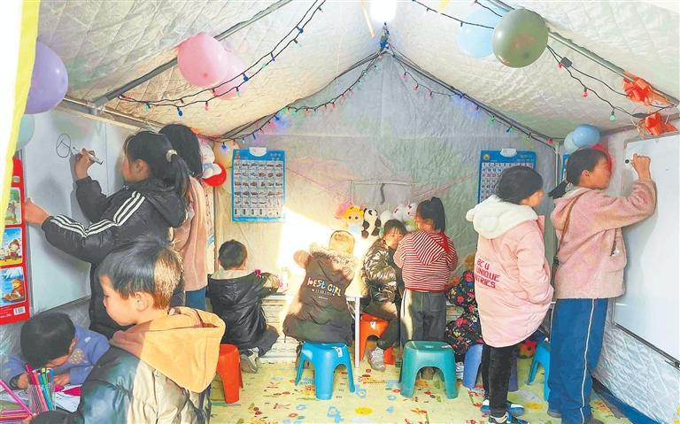 12月24日下午,積石山縣大河家鎮(zhèn)大河村安置點上,傳來孩子們瑯瑯讀書聲。
