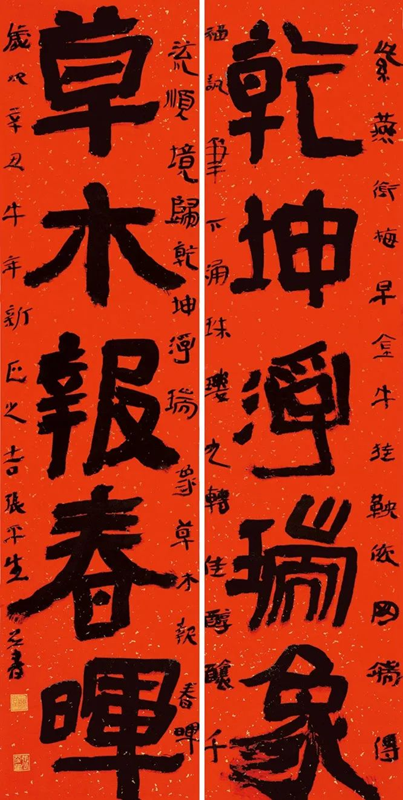 張平生是“詩人中的書法家,是書法家中的詩人”,是真正實(shí)現(xiàn)“我筆寫我文”的為數(shù)不多的“藝文兼?zhèn)?rdquo;型書法家。他的的書法,充分發(fā)揮“二爨”優(yōu)勢,上溯漢碑簡牘,把三者的風(fēng)格重新優(yōu)化組合,生發(fā)出新的系列,活化了“二爨”在當(dāng)代的創(chuàng)作形態(tài),獲得廣泛贊譽(yù)。