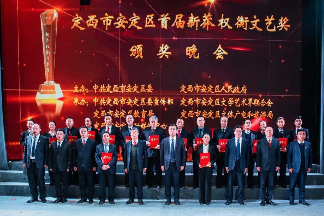 1月21日晚,由定西市安定區(qū)委、區(qū)政府主辦的首屆“新莽權(quán)衡文藝獎”頒獎晚會在隴中許鐵堂秦腔劇院隆重舉行。讀者出版社紀(jì)實(shí)文學(xué)作品《國寶莽權(quán)》榮獲文學(xué)類一等獎。