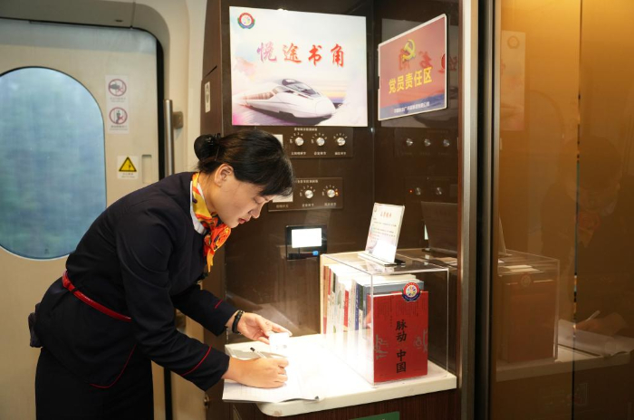 “建立讀書角,將‘全民閱讀活動’理念推進到高鐵動車組上,讓閱讀成為旅客最好的陪伴。”長沙客運段動一車隊黨總支書記王艷萍談到“悅途書角”創辦理念時說。