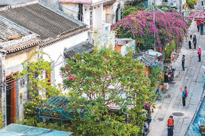 黃昏時分,高大粗壯的老榕樹下,老人閑話家常;籃球場上,孩子們追逐奔跑。10多年來,從本地村民到外來商戶,從三溪經聯社到社區、街道,從民間自發到政府規劃引導,各方匯聚合力,讓三溪村在“微改造”中迎來新生。