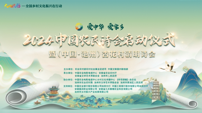 大地流彩,詩(shī)賦“三農(nóng)”。3月31日,“大地流彩—全國(guó)鄉(xiāng)村文化振興在行動(dòng)”重點(diǎn)活動(dòng)“愛(ài)中華愛(ài)家鄉(xiāng)”2024中國(guó)農(nóng)民詩(shī)會(huì)啟動(dòng)儀式暨(中國(guó)·池州)杏花村清明詩(shī)會(huì)在安徽池州杏花村文化旅游區(qū)舉辦,主題為“春和景明詩(shī)出池州”。本次活動(dòng)由農(nóng)業(yè)農(nóng)村部農(nóng)村社會(huì)事業(yè)促進(jìn)司、中國(guó)文聯(lián)國(guó)內(nèi)聯(lián)絡(luò)部主辦,中國(guó)農(nóng)業(yè)電影電視中心、安徽省農(nóng)業(yè)農(nóng)村廳、安徽省文學(xué)藝術(shù)界聯(lián)合會(huì)、池州市人民政府承辦。