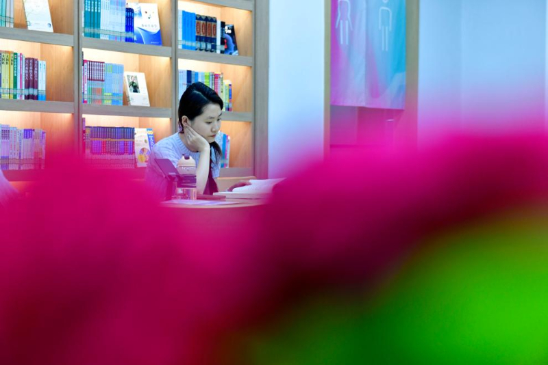 5月23日,讀者在日照市東港區城市書房櫻花園館閱讀。