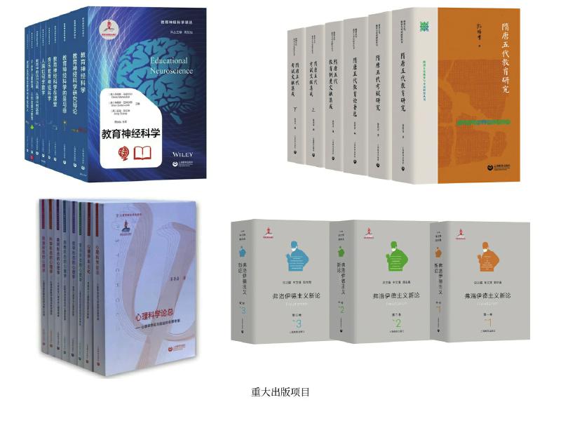 上教社密切關(guān)注新時(shí)代教育發(fā)展的重大理論問題與現(xiàn)實(shí)問題,響應(yīng)國家教育發(fā)展戰(zhàn)略需求,精心布局學(xué)術(shù)專業(yè)出版“大項(xiàng)目”,連續(xù)入選國家重點(diǎn)出版物出版規(guī)劃、2013—2025年國家辭書編纂出版規(guī)劃,獲國家出版基金資助。這其中除前文中的大型??乒ぞ邥?,還包括一系列教育與心理學(xué)原創(chuàng)研究和前沿研究成果:由中國教育史學(xué)者孫培青編著的“隋唐五代教育與考試研究叢書”,構(gòu)建了反映隋唐五代教育與考試全貌的教育理論體系和文獻(xiàn)資料體系,是中國教育史學(xué)科建設(shè)的一項(xiàng)學(xué)術(shù)文化積累工程;《中國課程史》以現(xiàn)代課程理論為分析框架,以歷史線索展現(xiàn)中國學(xué)校課程的新陳代謝;“教育神經(jīng)科學(xué)譯叢”(9冊(cè))是我國首個(gè)聚焦教育神經(jīng)科學(xué)這一國際教育研究前沿領(lǐng)域的學(xué)術(shù)譯介系列;《中國傳統(tǒng)德育心理學(xué)思想新論》系統(tǒng)挖掘整理中華優(yōu)秀傳統(tǒng)文化中蘊(yùn)含的德育心理學(xué)思想,構(gòu)建中國特色心理學(xué)話語體系;我國第一套以大心理學(xué)觀,從本土心理學(xué)視角系統(tǒng)探索和解讀不同形態(tài)心理學(xué)的學(xué)術(shù)系列“心理學(xué)形態(tài)研究系列”(6冊(cè)),全景考察心理學(xué)的命運(yùn)與前途,深入探索中國本土心理學(xué)的選擇與突破;《弗洛伊德主義新論》(三卷)匯聚國內(nèi)弗洛伊德主義研究領(lǐng)域的權(quán)威學(xué)者,歷史展現(xiàn)弗洛伊德理論的百年發(fā)展歷程,提供弗洛伊德主義研究的“全景圖”。這些重大出版項(xiàng)目為構(gòu)建中國特色自主知識(shí)體系,建設(shè)中國教育學(xué)和心理學(xué)學(xué)科體系、學(xué)術(shù)體系、話語體系發(fā)揮了重要作用。