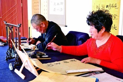 市民在社區文化中心練習書法。光明日報記者 郭俊鋒攝