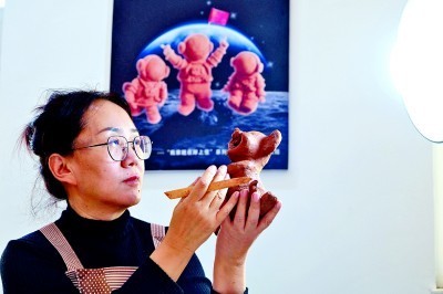 烏海“黃河泥娃”傳承人張勇在制作泥娃。光明日報記者 郭俊鋒攝