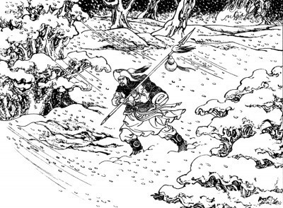 《水滸傳》用豐富細節(jié)塑造了一個有血有肉的林沖形象。圖片選自連環(huán)畫《水滸傳·風(fēng)雪山神廟》。資料圖片
