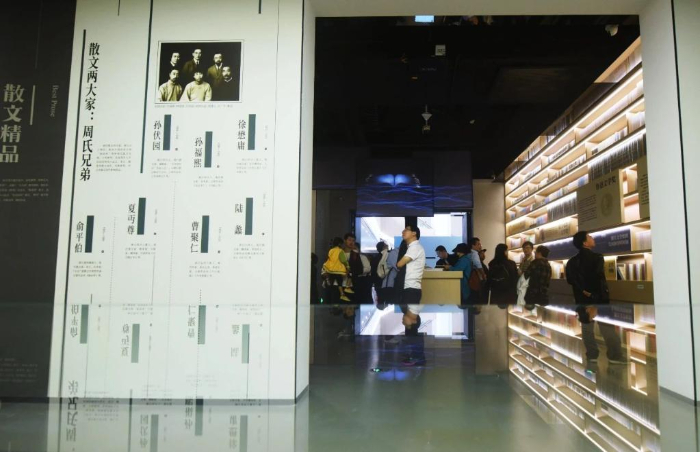 在今天這個數(shù)字化時代,精神場域的一大依托就是數(shù)字賦能。由中國現(xiàn)代文學館與浙江文學館共同建設的中國新時代文學大數(shù)據(jù)中心,是我國首個全面、系統(tǒng)的文學大數(shù)據(jù)綜合應用平臺。浙江文學館專門開辟數(shù)字化展廳,以龐大的文學數(shù)據(jù)為支撐,同步聯(lián)通文學大數(shù)據(jù)中臺,隨時更新展覽內容。