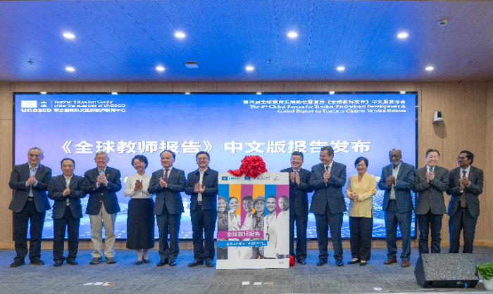 圖為與會嘉賓聯合發布首份《全球教師報告》中文版。新華網發