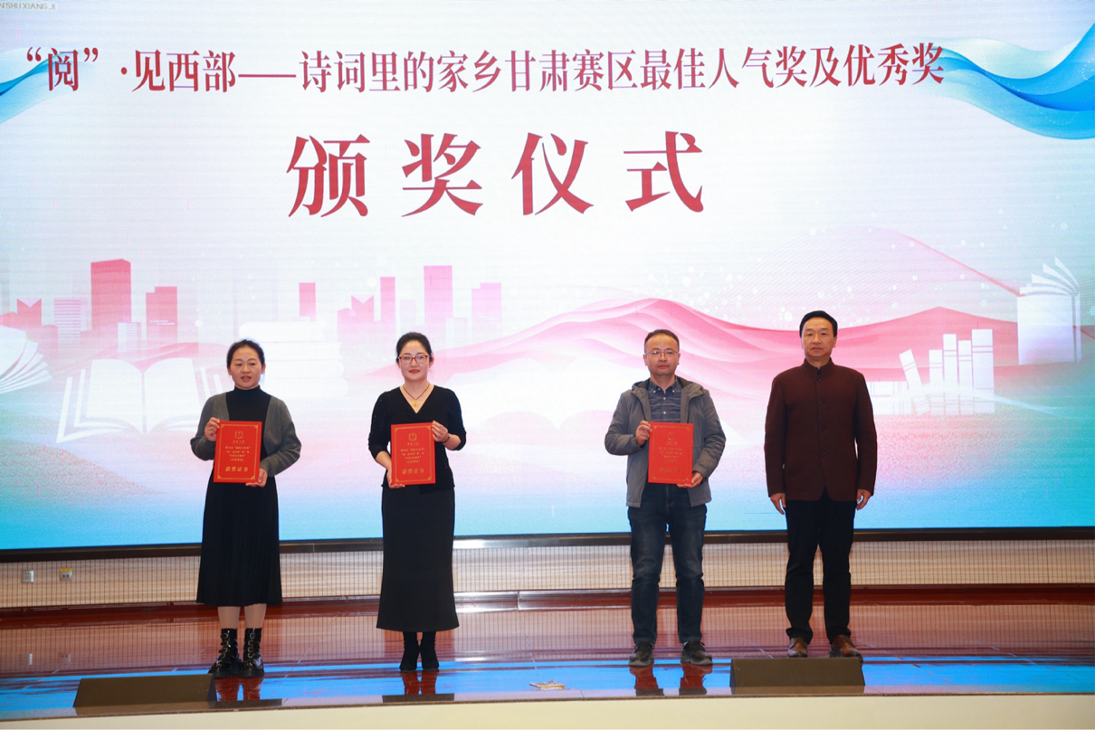 閉幕式上公布并表彰了“優秀閱讀推廣活動案例獎”獲獎人員、“‘穿越古今·夢回隴右’詩詞大賽優秀組織獎”獲獎人員、“‘閱·見西部’第一季——‘詩歌里的家鄉’(甘肅賽區)最佳人氣獎和優秀獎”獲獎人員。