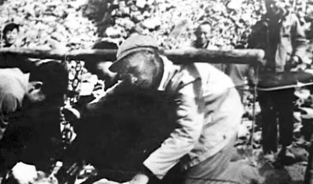時任寧化縣隆陂水庫總指揮的谷文昌(中)與群眾同勞動,此時他已經55歲。